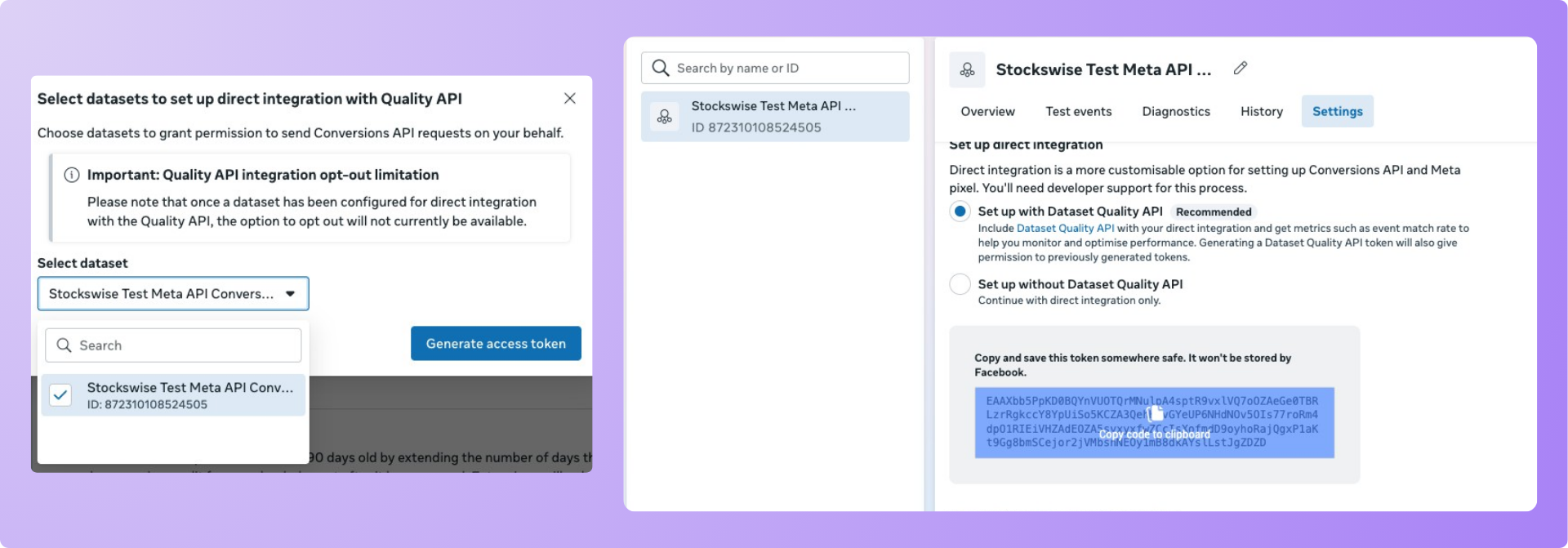 On the next screen, select the name of the dataset just created and click on 'Generate access token' again to generate the access token.