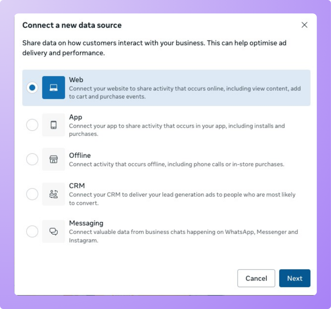 Congratulations, you have successfully created a new data source on Meta Events Manager.