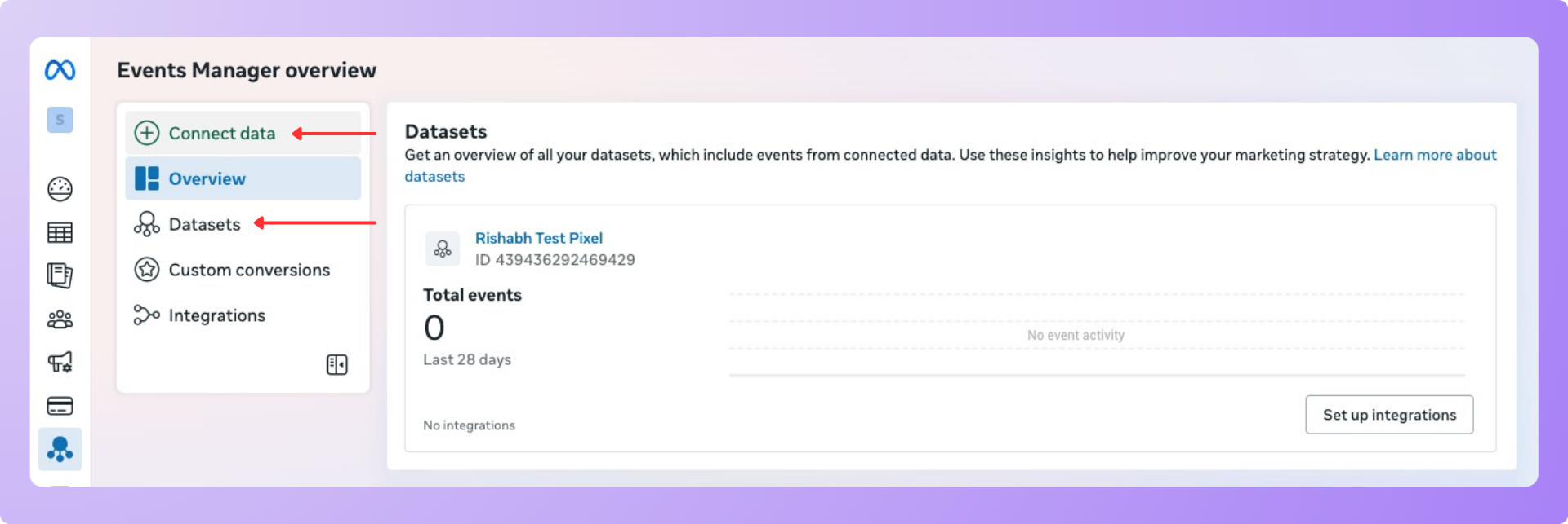 This section explains how to create a Meta Pixel (dataset) using Facebook Business Manager and Events Manager. The Pixel ID or Dataset ID generated here will be required while setting up the integration in Knorish.