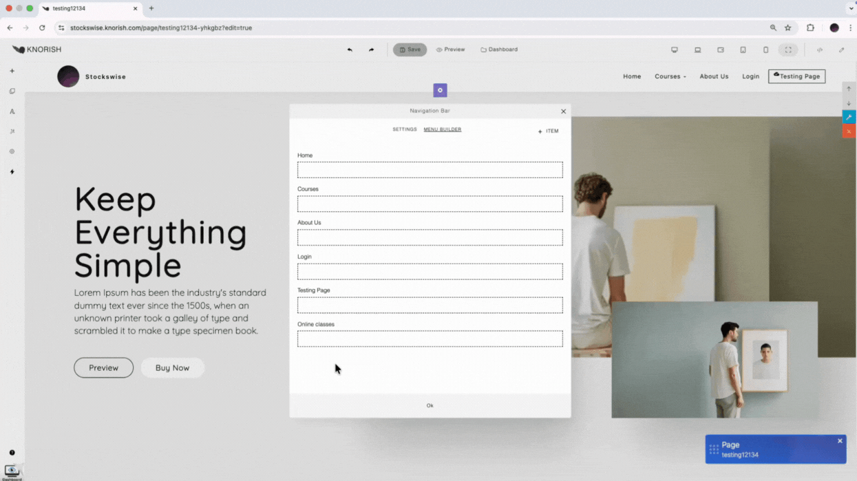 Menu changes made using the new page builder automatically apply to all existing and new pages built with it.