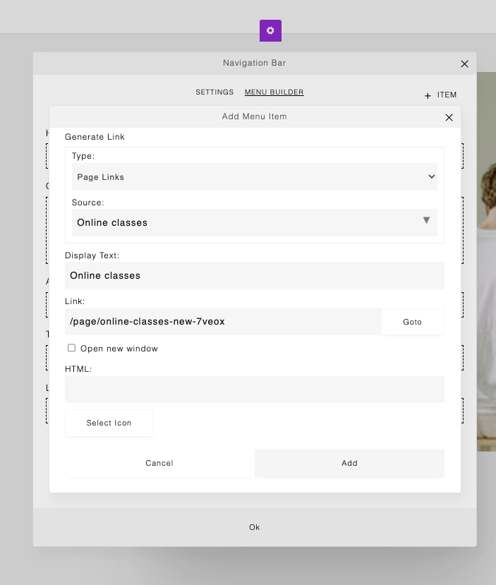 Click Add to include it in your menu