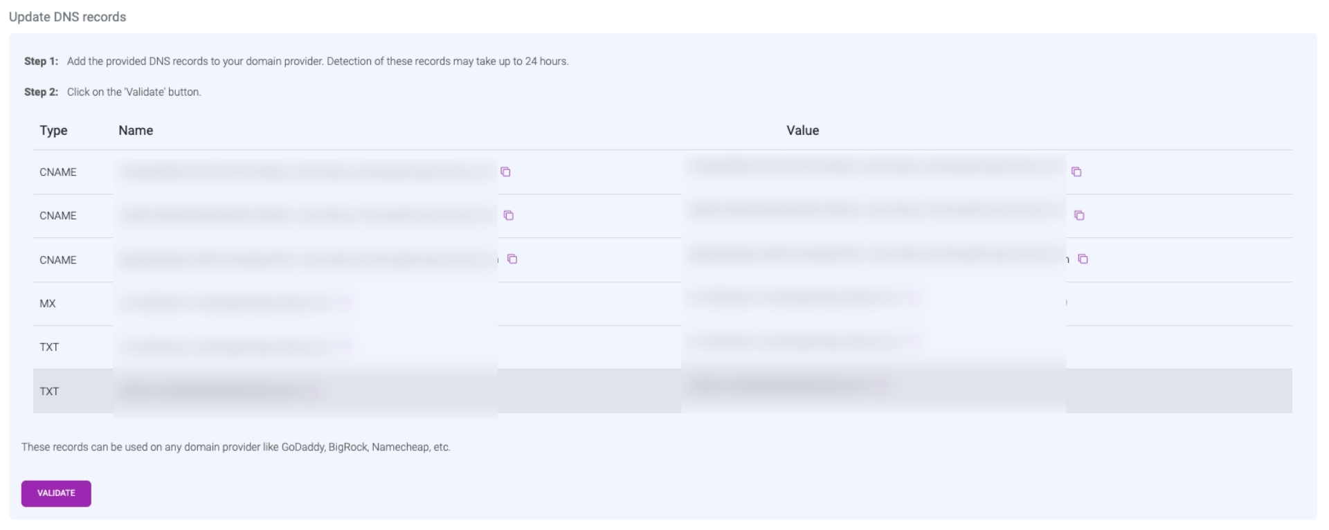 To begin the white-labeling process, you’ll need to connect your sender email domain, add DNS records, and finalize the verification.