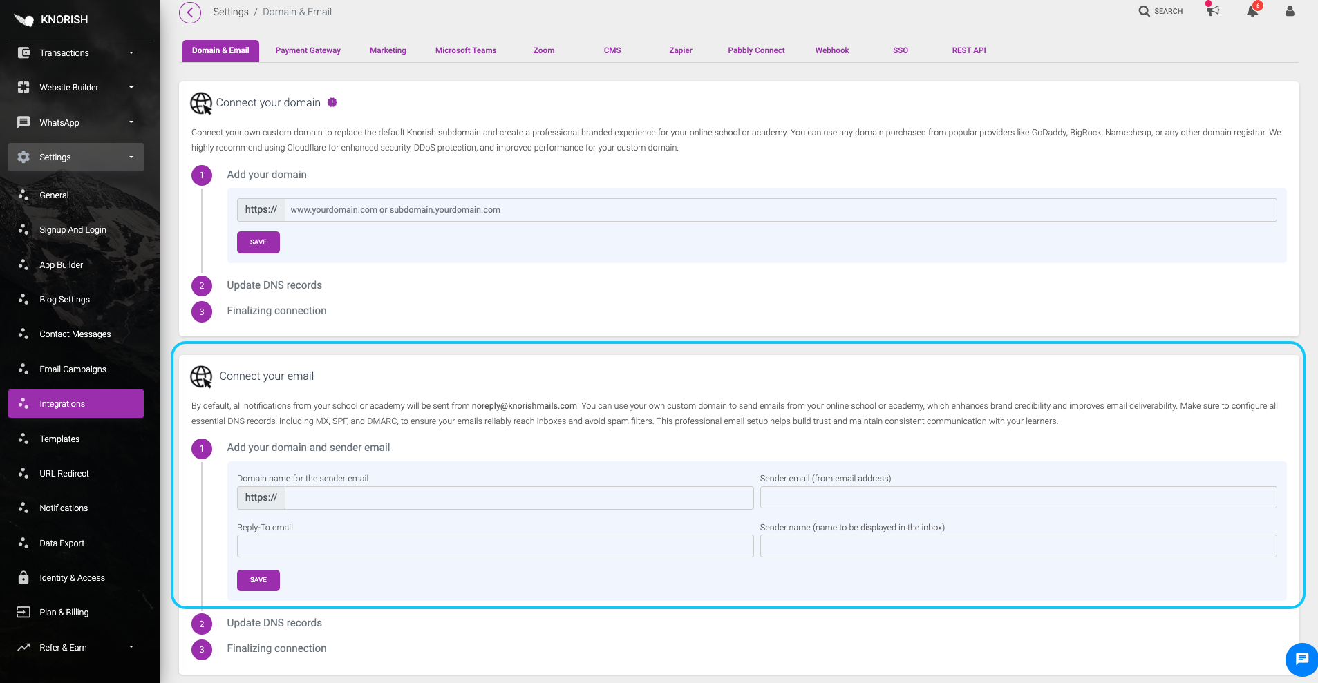 How to whitelabel your emails sent from your knorish account using your own domain?
